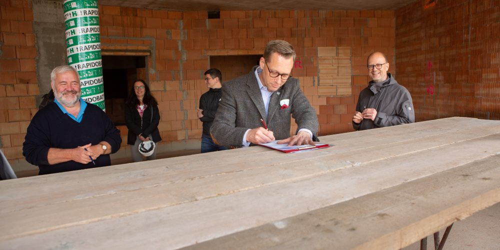 Seit der symbolischen Grundsteinlegung unseres Neubauvorhabens am Lindenplatz im letzten Jahr sind gerade einmal acht Monate vergangen. Dennoch ist es gelungen, in dieser kurzen Bauzeit den wichtigen Rohbau fertigzustellen.