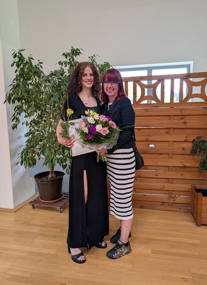 Ein weiterer Grund zum Feiern: Der Klassenbeste bei den Pflegefachkräften und die Klassenbeste bei den Pflegehelfern haben ihre Ausbildung bei uns absolviert – ein eindrucksvoller Beweis für die hohe Qualität unserer Ausbildung.